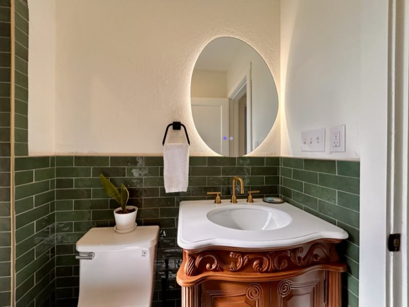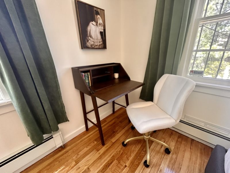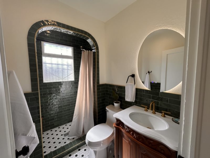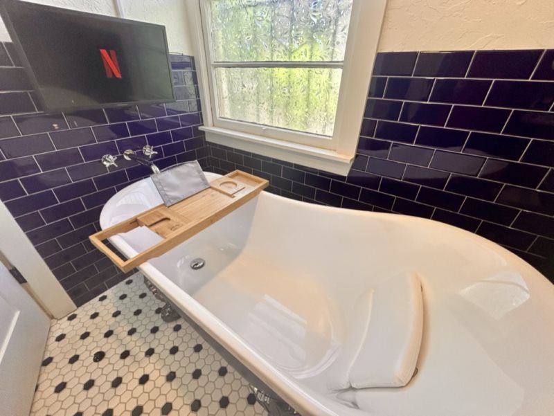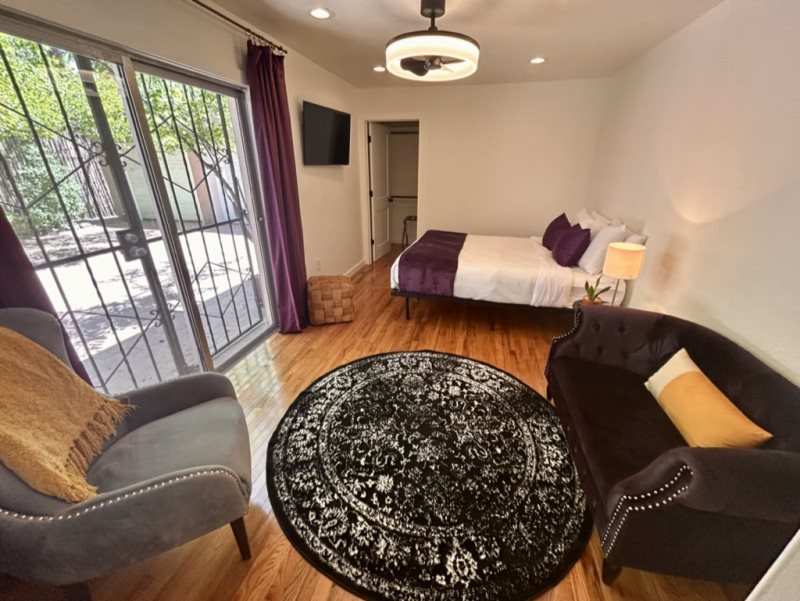 The bedroom offers a peaceful retreat with plush linens, ample storage, and authentic Santa Fe charm. Outside, enjoy your private patio—ideal for relaxing with a book, sipping wine under the stars, or simply taking in the quiet ambiance of the Eastside.